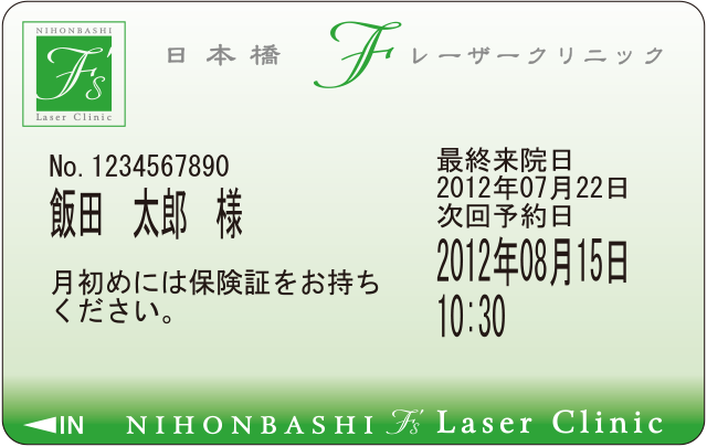 氏名や予約日時が大きく印字されて、とても見易く、ご高齢の患者様に喜ばれています。またPET素材のため、皺や破損の心配がない、非常に薄くて財布などにしまいやすいといったメリットも多く、医院のイメージアップに一役買ってくれています。